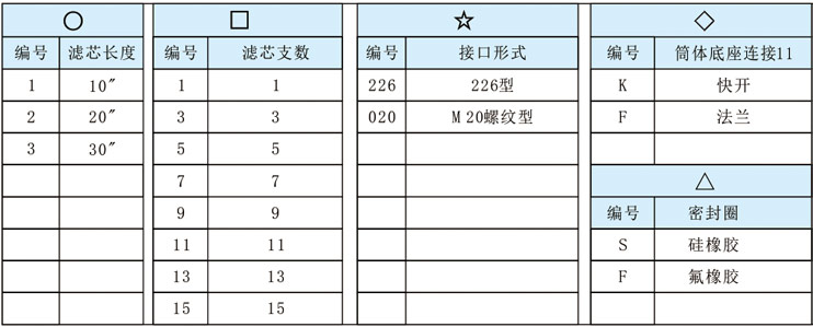 TC系列不銹鋼過濾器有固定式和小車翻轉(zhuǎn)式二種形式,濾殼有上下進出料和左右進出料二種,濾芯采用燒結(jié)的鈦合金濾棒,常規(guī)接口為226和M20螺紋二種,特殊規(guī)格我們可根據(jù)客戶的要求進行設(shè)計加工。產(chǎn)品訂購信息Ordering InformationTC--○-□一☆一◇一△